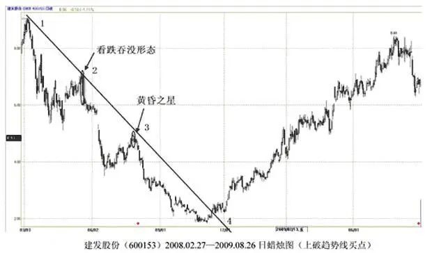 买点一:上破原下跌趋势线的买点